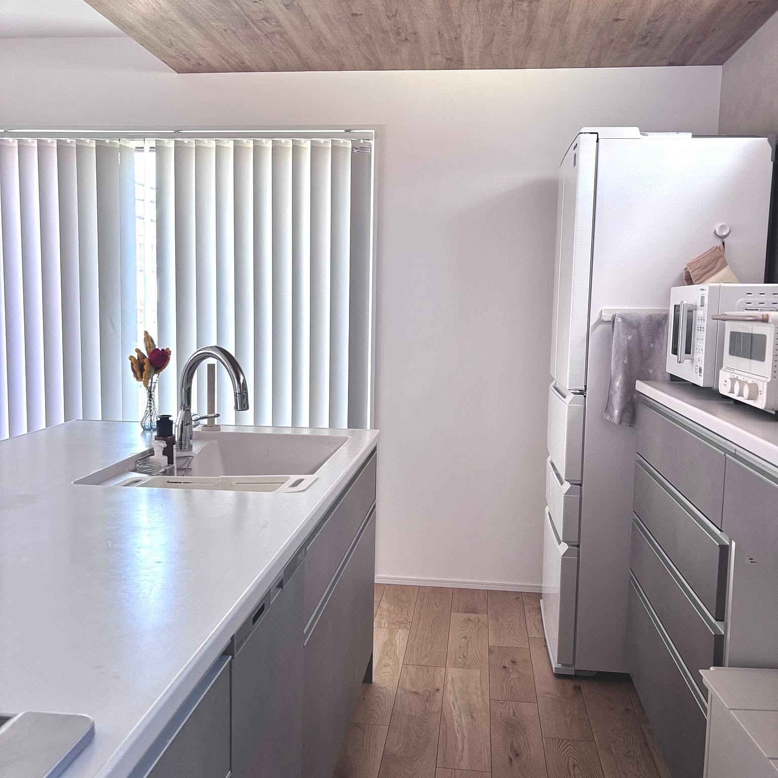 「通路はあまり広くはありません。実は、引っ越した当初は狭さが気になっていました。でも今では、むしろ効率の良さを実感しています!カップボードとの距離が近いから、振り返ればすぐ手が届くんです。この動線の快適さが、心地良い暮らしにつながっています。」