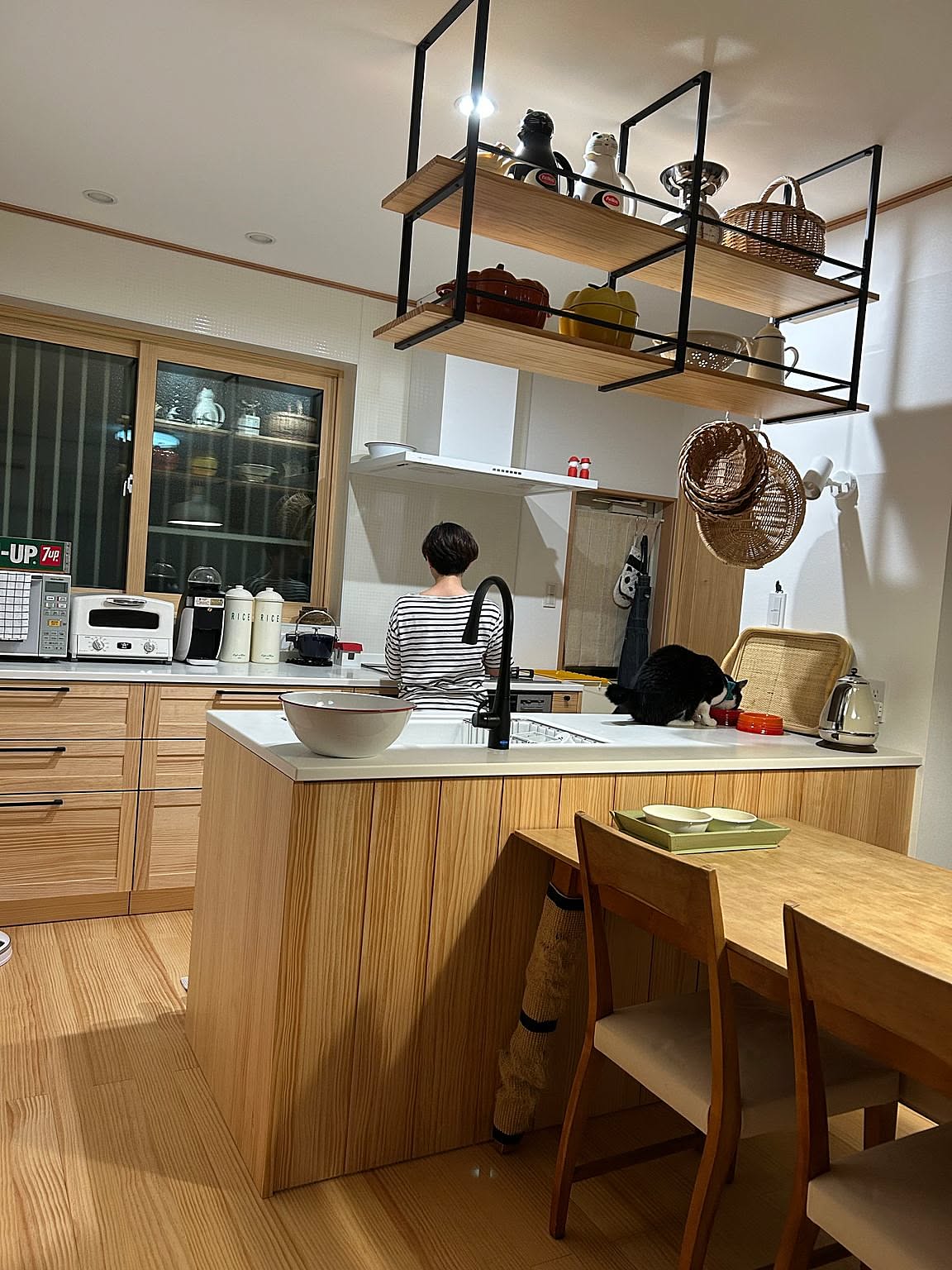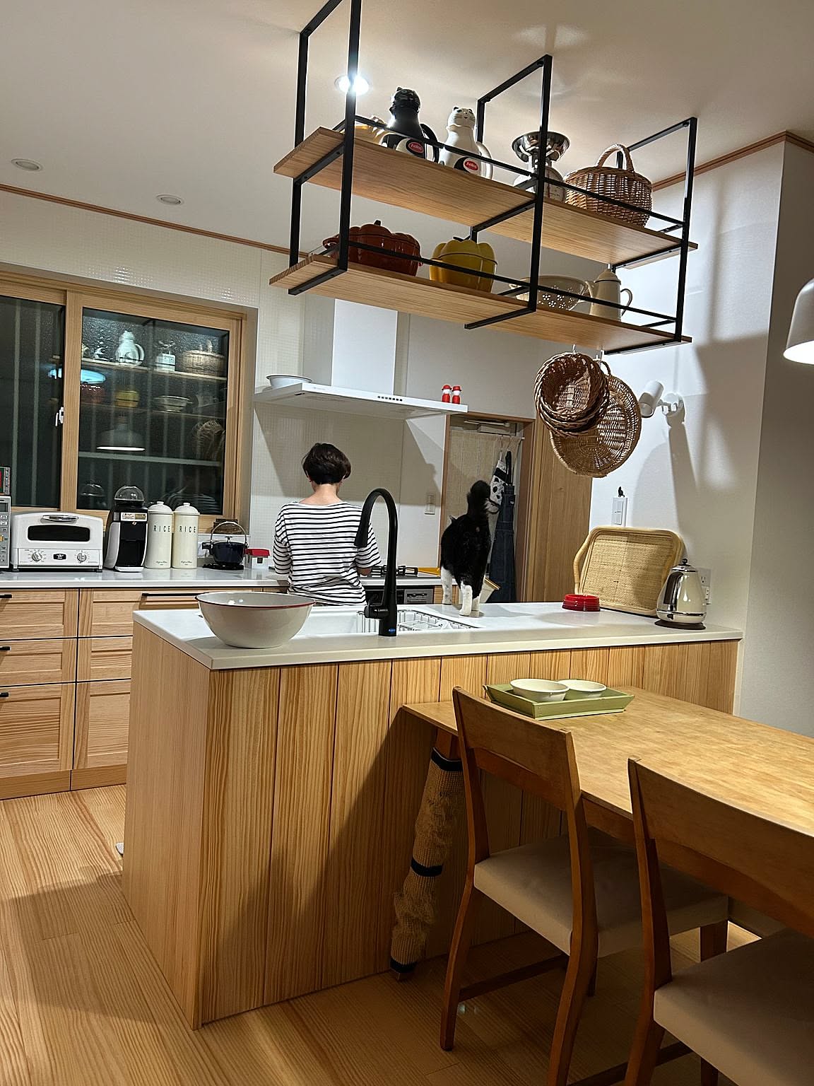 「今回、このような形で我が家のキッチンを紹介していただくこととなり、改めて自分が好きなキッチンとは何なんだろうと色々と考えました。そして、やはりテーマはとても大切だと実感しました。自分が好きなものに囲まれているのが一番です。そんな好きをいい状態で保ちたいから、日々の片付けや掃除の重要性に思い至ります。好きだから、より良く保つ、もっと好きになる。この好循環ができあがれば、気が付くと自分らしい愛着の持てるキッチンになっているのではないかと私は思います。」