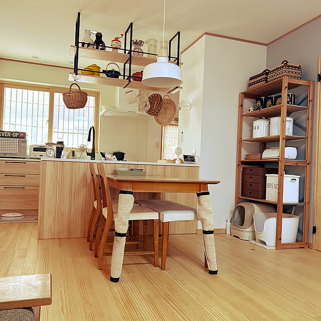 「リフォームの際は『絶対につける』と決めていたのが天吊棚です。素敵な雰囲気をつくってくれて大満足なのですが、実は少し悩ましい一面も……。手が届かないので飾り棚的に使用しているものの、インテリアの専門知識がない私には、何をどう飾れば良いのか、何が正解なのかがさっぱりなんです。とりあえず今は、私の好きなものを好きなように飾る場所になっています。」