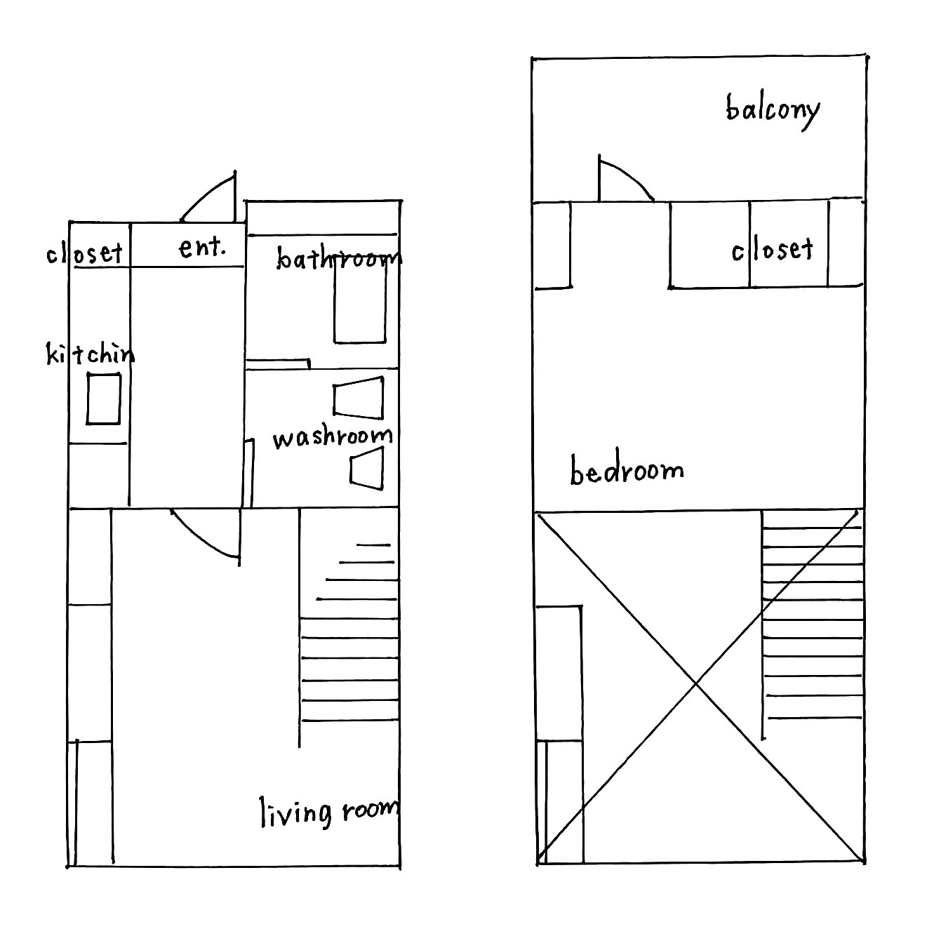 メゾネットのmiyoさん宅。キッチンは、玄関とリビングをつなぐ廊下のスペースを兼ねた壁付けⅠ型です。そのため、比較的コンパクトで収納家具を追加するのも不向き。つい、凝ったキッチンづくりは諦めてしまいそうなところですが、持ち物の量を見直したり、必要な物で演出を加えたりと、miyoさんは理想の実現に前向きです。暮らしを楽しむ、そんな心意気も明るい空間には溶けだしているのかもしれません。