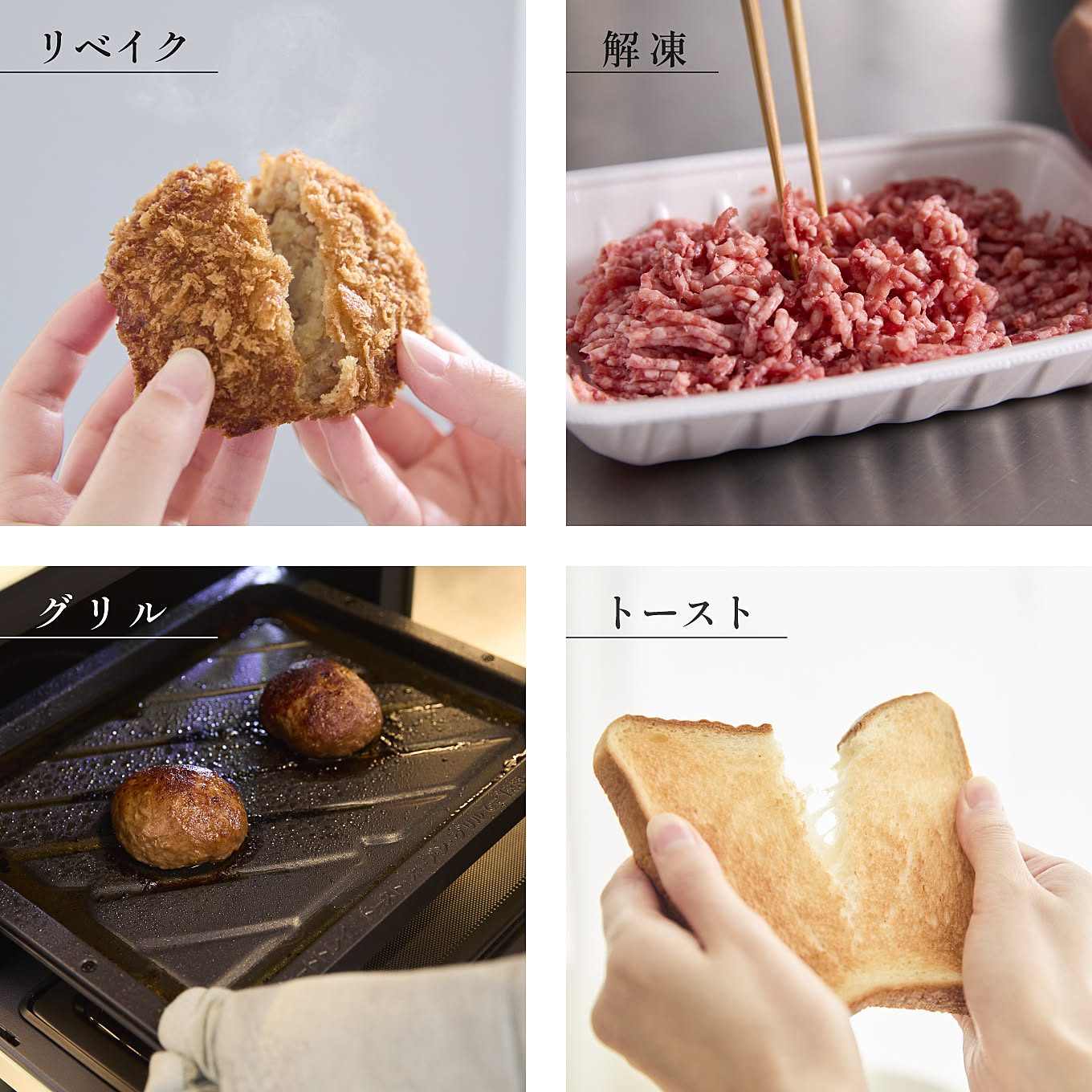 「0.2秒で発熱する『グラファイトヒータ®』による加熱と、マイクロ波によるレンジ加熱を組み合わせた新技術『グラファイトレンジ加熱』を搭載しました。これ1台で、サクッと食感を復活させる『リベイク』やムラを抑えた『解凍』、予熱いらずの時短『グリル』、裏返し不要の“外カリ中モチ”『トースト』がすべて叶います!」