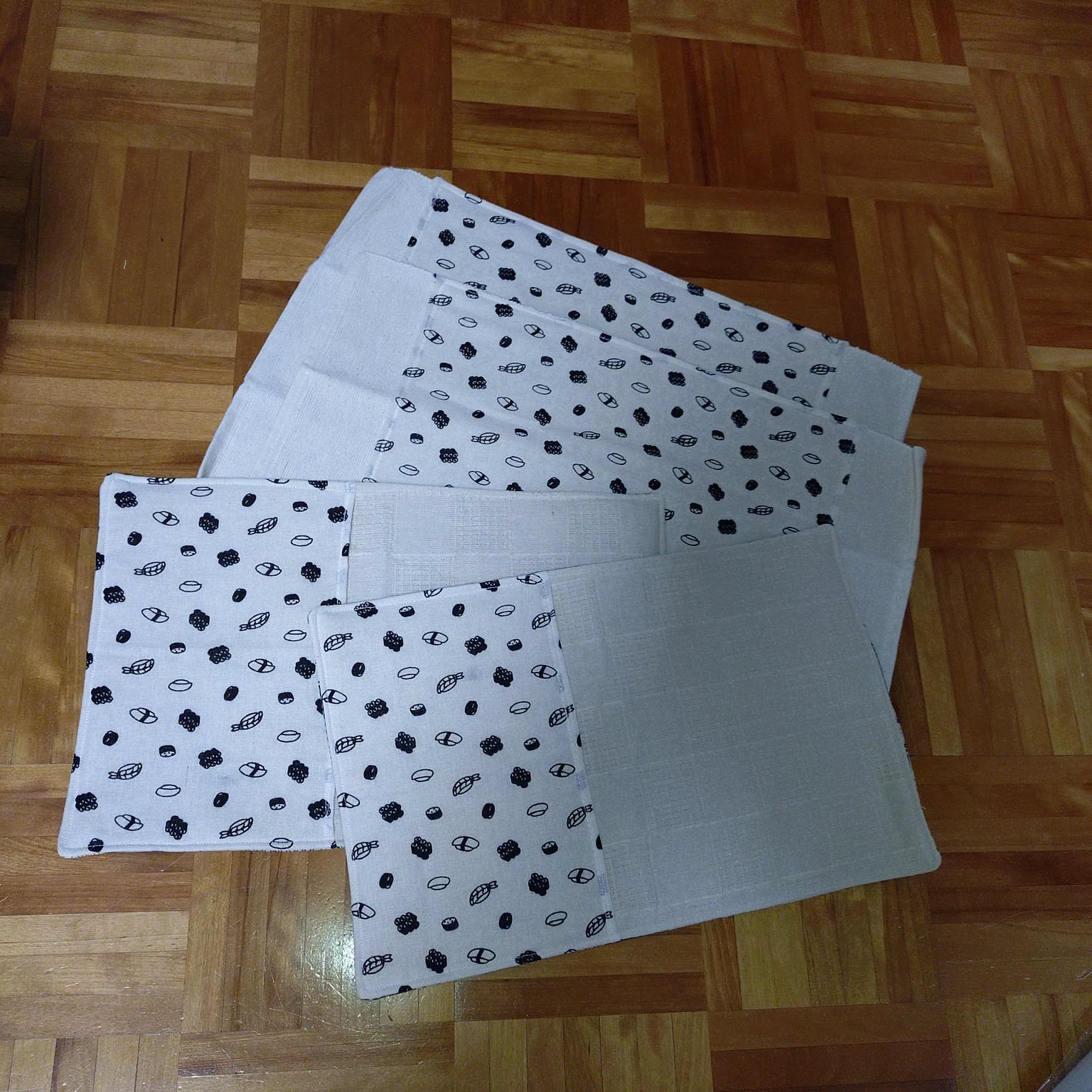ランチョンマットの長さに合わせて、手ぬぐいを縫い足すイメージです。落ちない汚れの目隠しにしたり、シンプルなランチョンマットのリメイクにぴったり。色合わせや柄合わせも楽しめます。