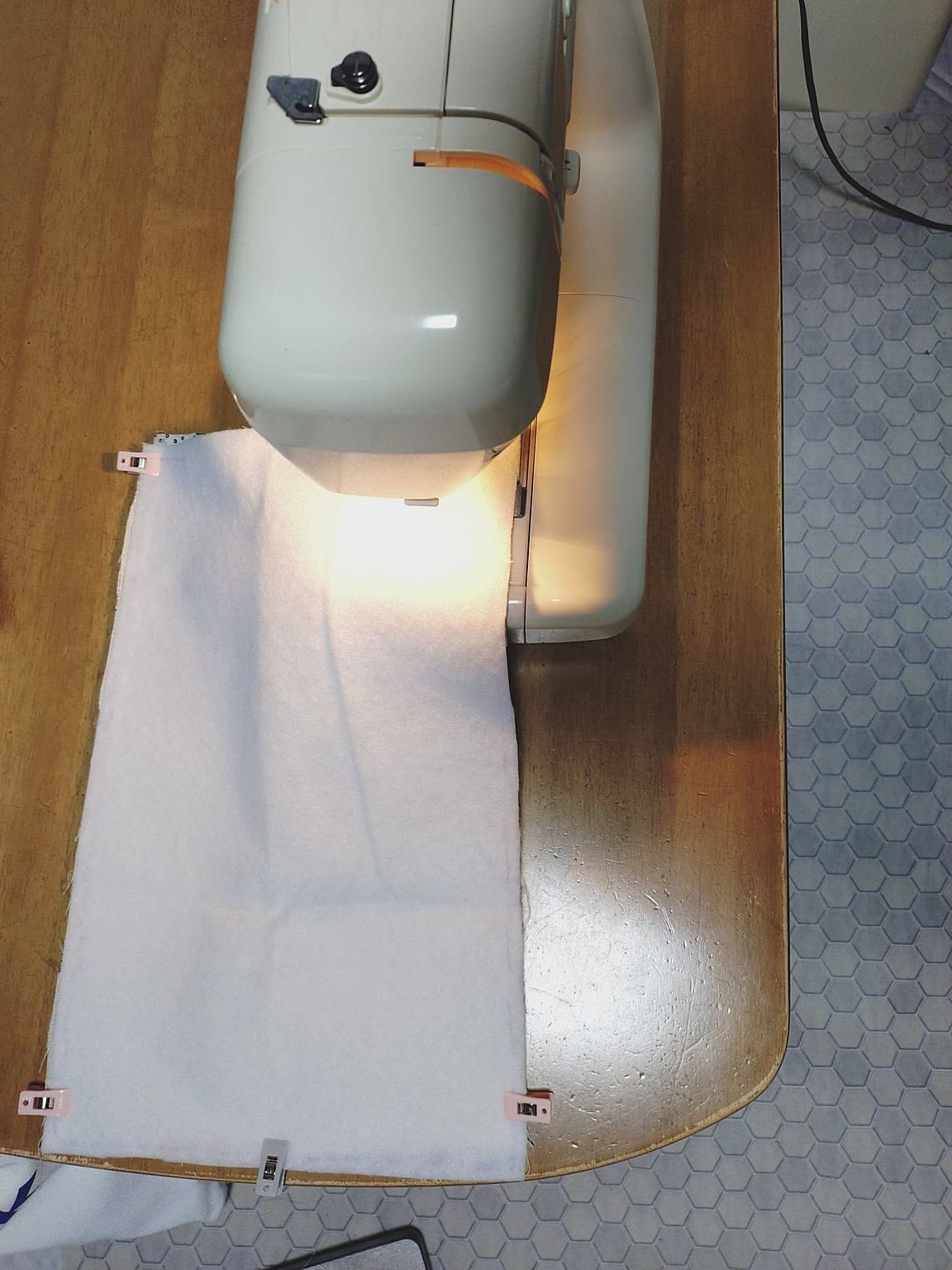 ここからは、裏布を中表にして四方向縫いをしていきます。※返すので、8cmほど返し口を開けておくのを忘れずに!この時に必要であれば、キルト芯も入れてください。