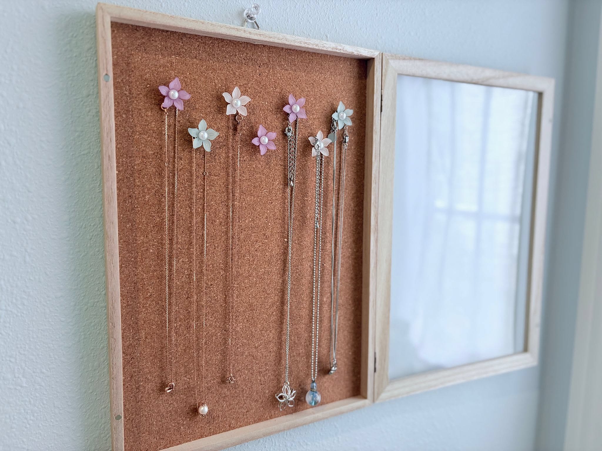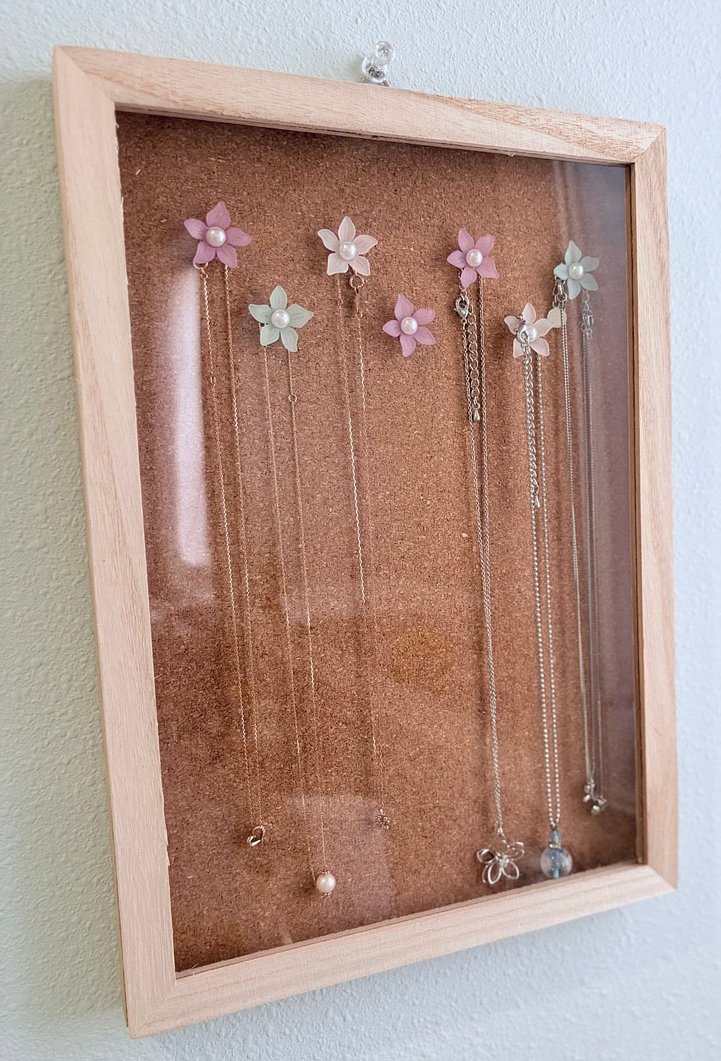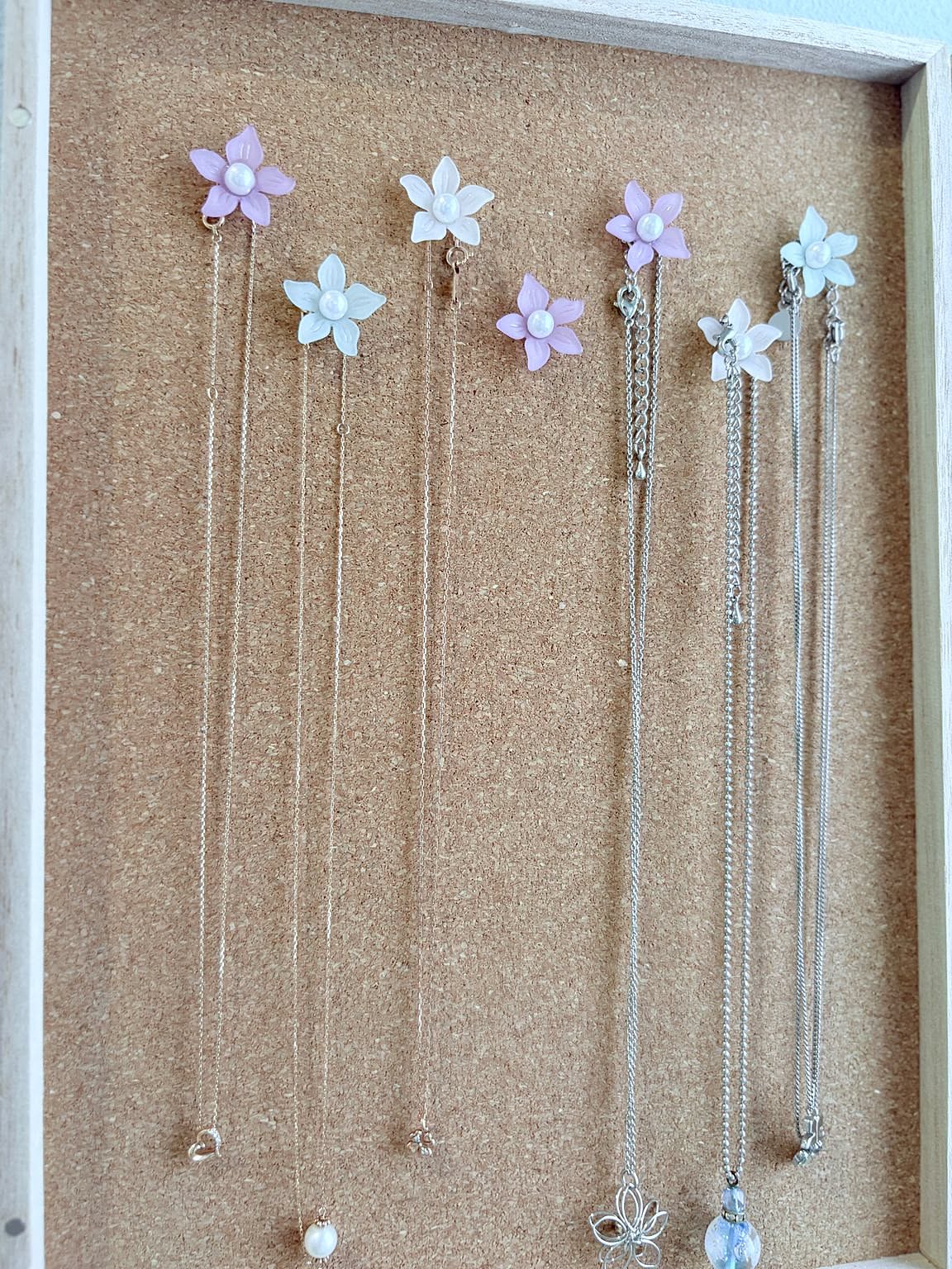 aoi0915さんのアイデアなら、お気に入りのネックレスをストレスなく収納できます。時々中身を入れ替えたり、壁掛けにする場所を変えたりと、模様替え感覚で楽しめるのもうれしいところ。ネックレスを外す場所や、身に着ける場所、例えば脱衣所や玄関、寝室に置くのもおすすめです。