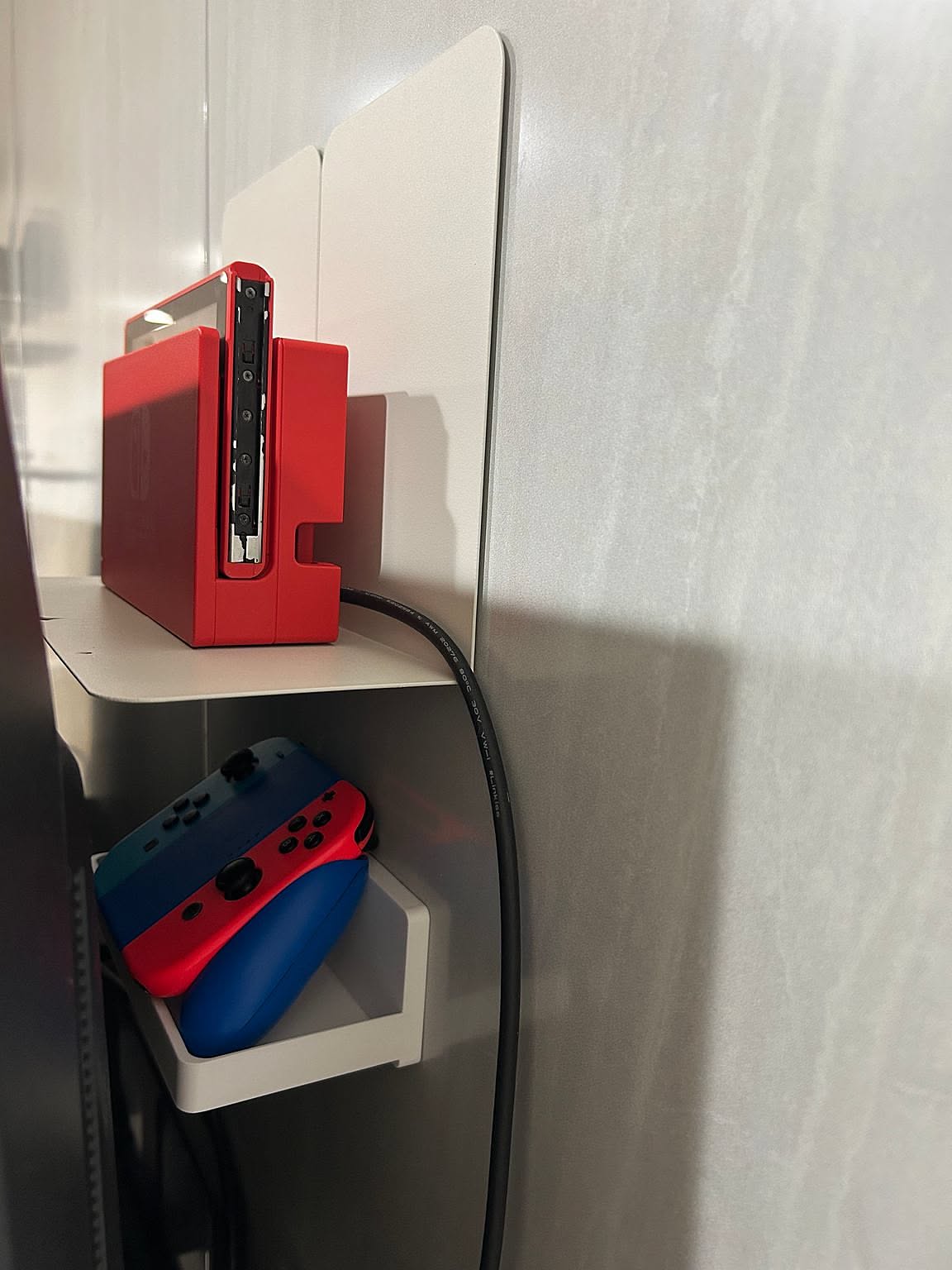 できたものを壁に貼れば、Nintendo Switch置き場の完成です。