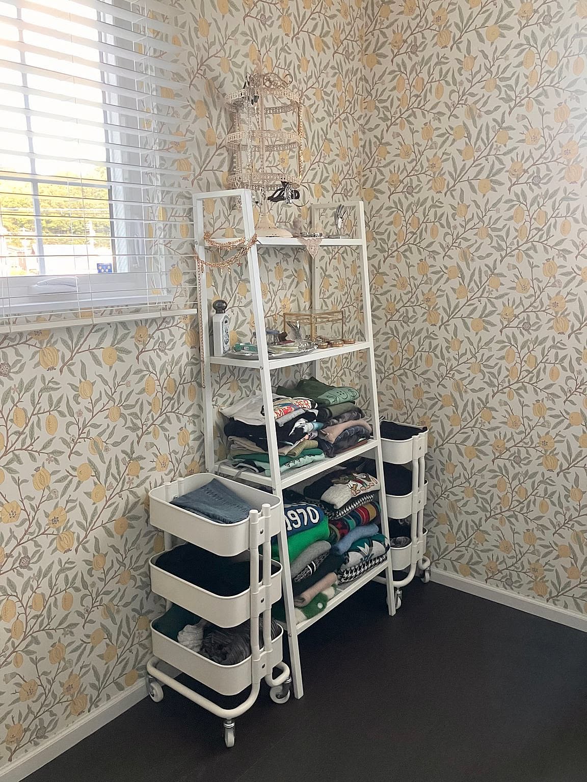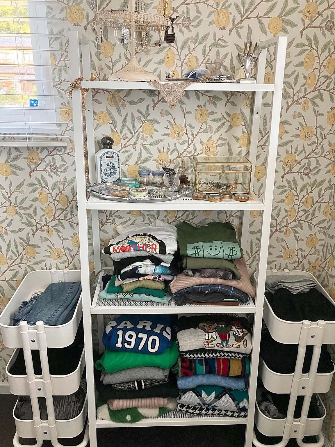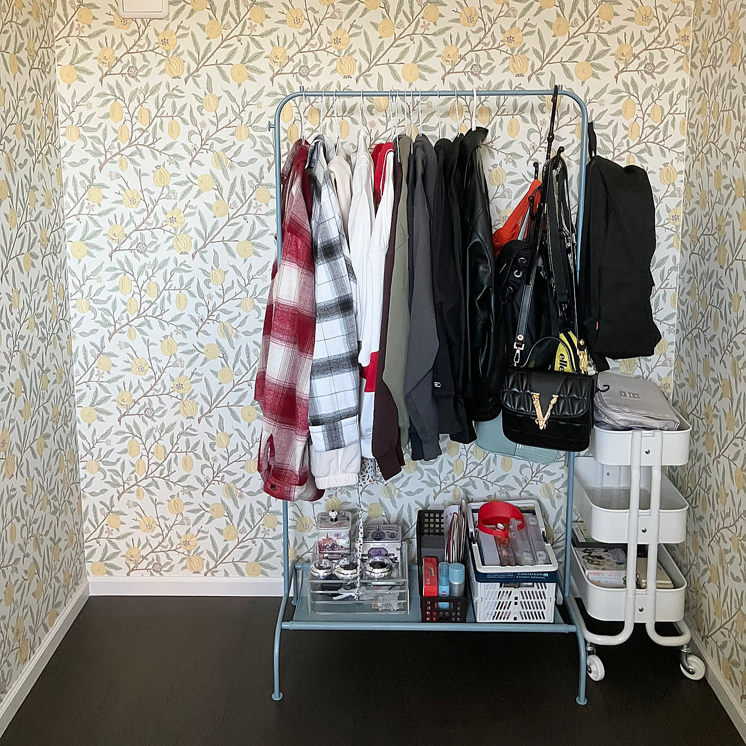 洋服を置いています。底がメッシュ素材になっていて通気性が良く、縦に背の高いデザインなので壁のスペースを有効活用できるのが良いです。そして何より、スタイリッシュ。部屋のインテリアに馴染んで、おしゃれな雰囲気にしてくれるのも気に入っているポイントです。