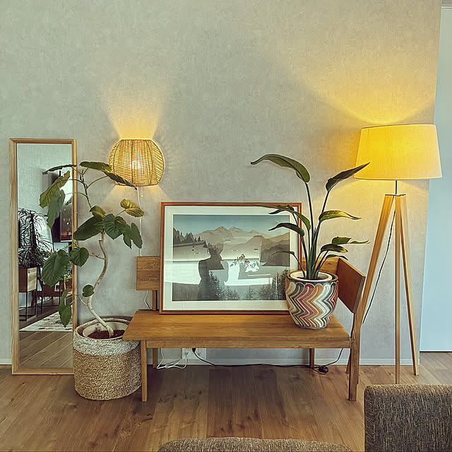 壁付けライトが部屋の雰囲気をあげてくれました。色々と取り付け場所を移せるので、模様替えも楽しいです。観葉植物の鉢も佇まいが気に入っている、買って良かったアイテムです。