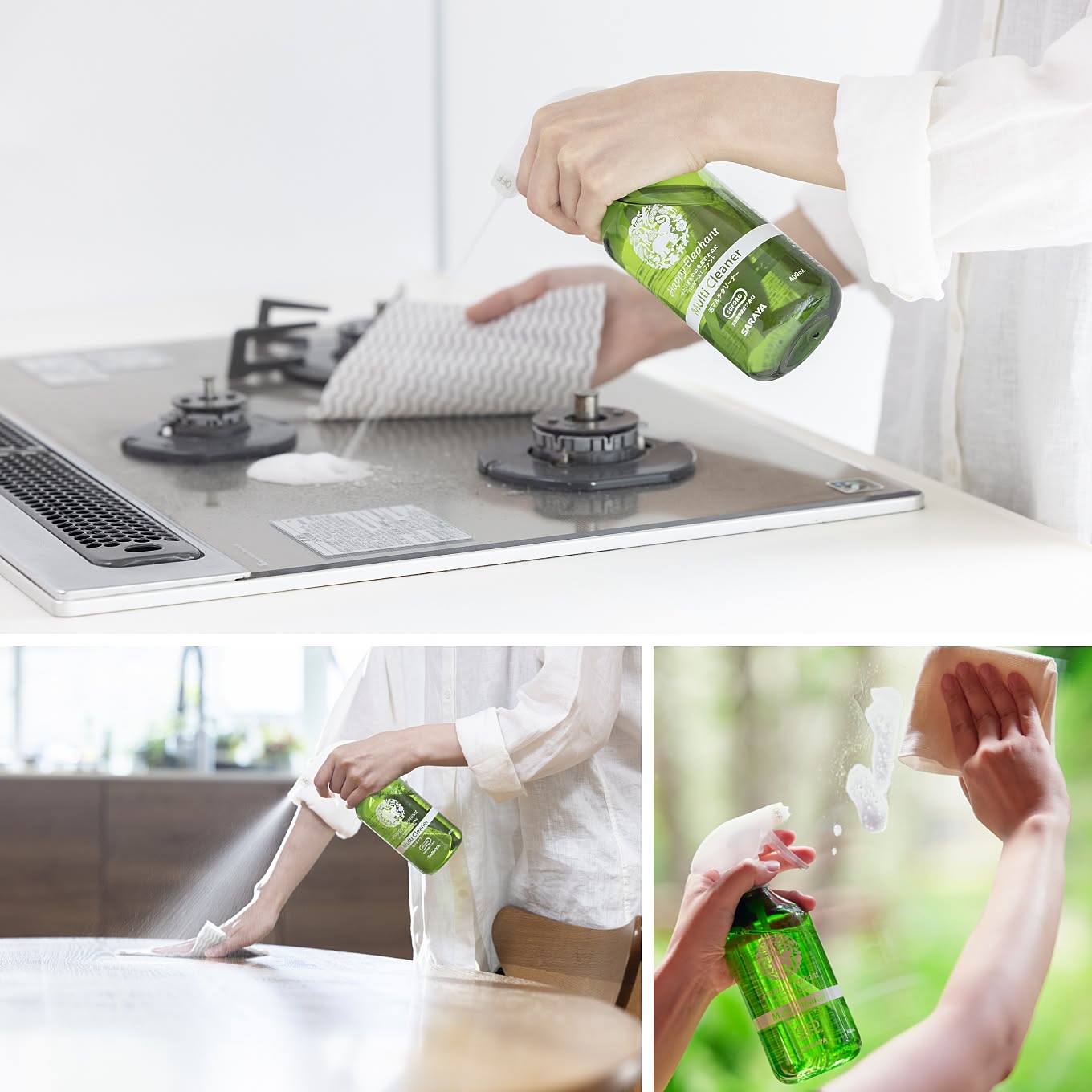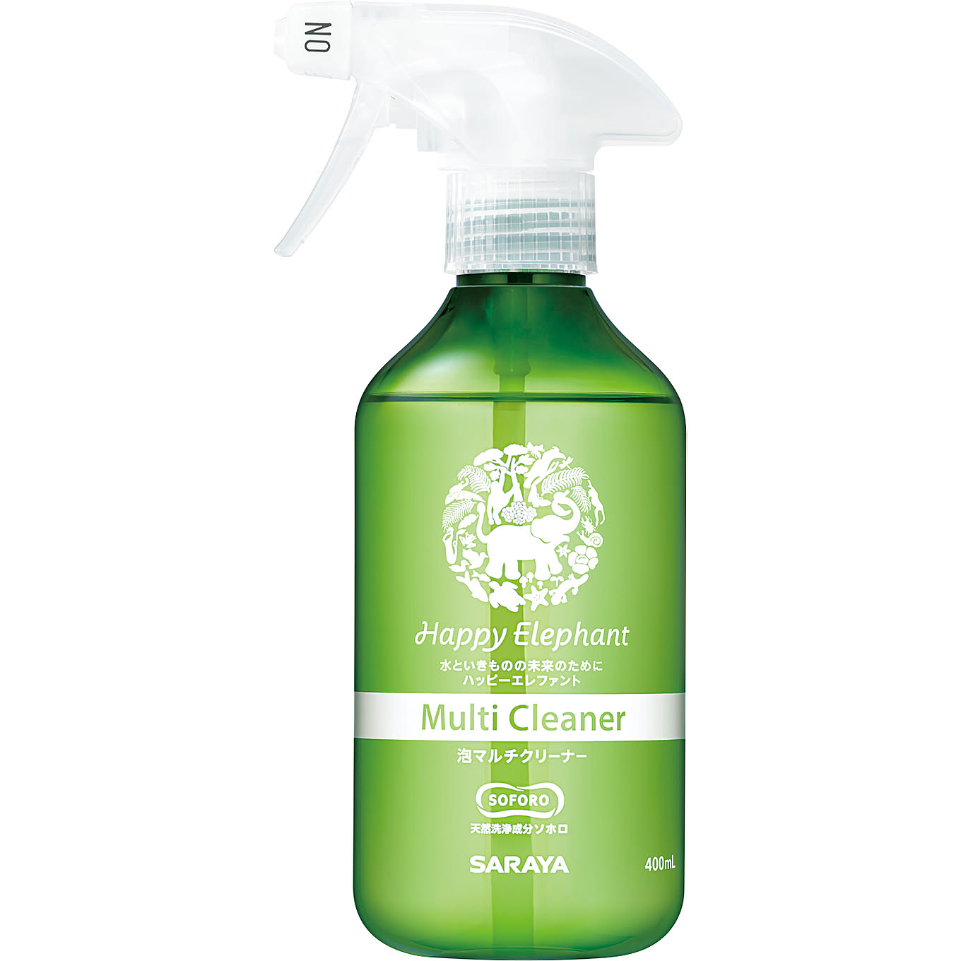 洗浄力と環境へのやさしさを両立したサステナブルな洗剤「ハッピーエレファント泡マルチクリーナー」。キッチンからお風呂・トイレまで、これ1本でまるごとお掃除でき、油汚れや水垢もしっかり落とします。扱いやすい泡スプレータイプで、お掃除したい場所にシュッとスプレーしたらあとはサッと拭くだけ。抜群の泡切れで、二度拭きする必要もありません。