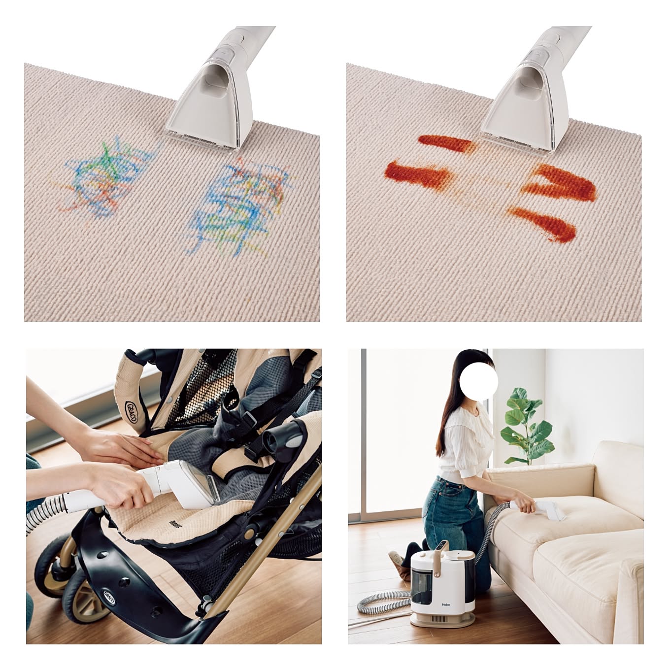 洗剤と合わせて使用すればさらに洗浄力がアップ!「ハッピーエレファント泡マルチクリーナー」を吹きかけてから水/温水モードで吸引すれば、クレヨンや水性ペンといった頑固な汚れも落とすことができますよ♪