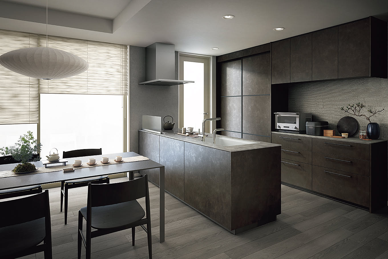 キッチンは袖壁をなくして、明るく開放的なLDK空間に。親子で会話をしながらリビングで宿題をしたり、集中したい時には個室を使ったり、子どもたちの気分やシチュエーションに合わせて使い分けできるようになりました。