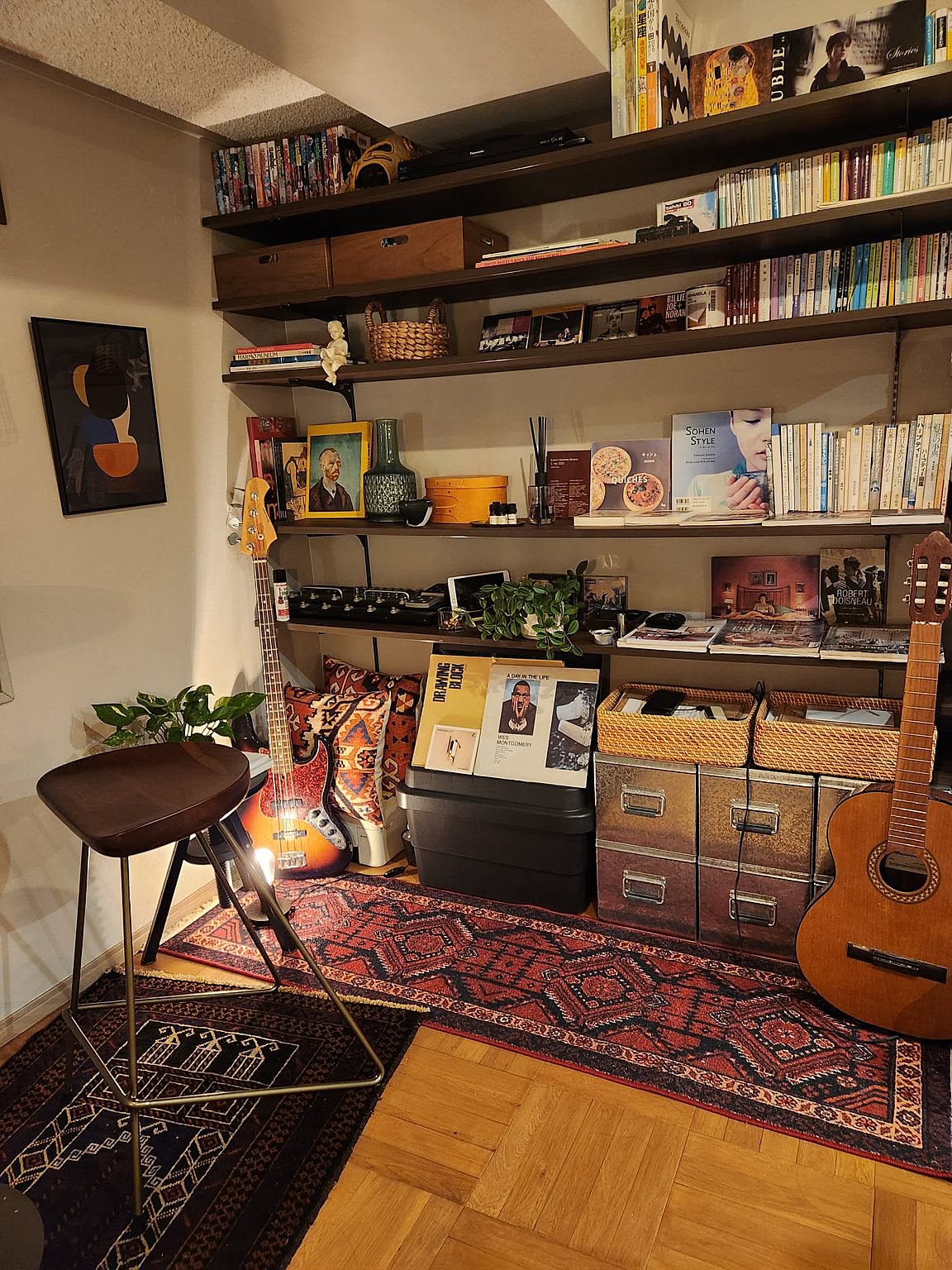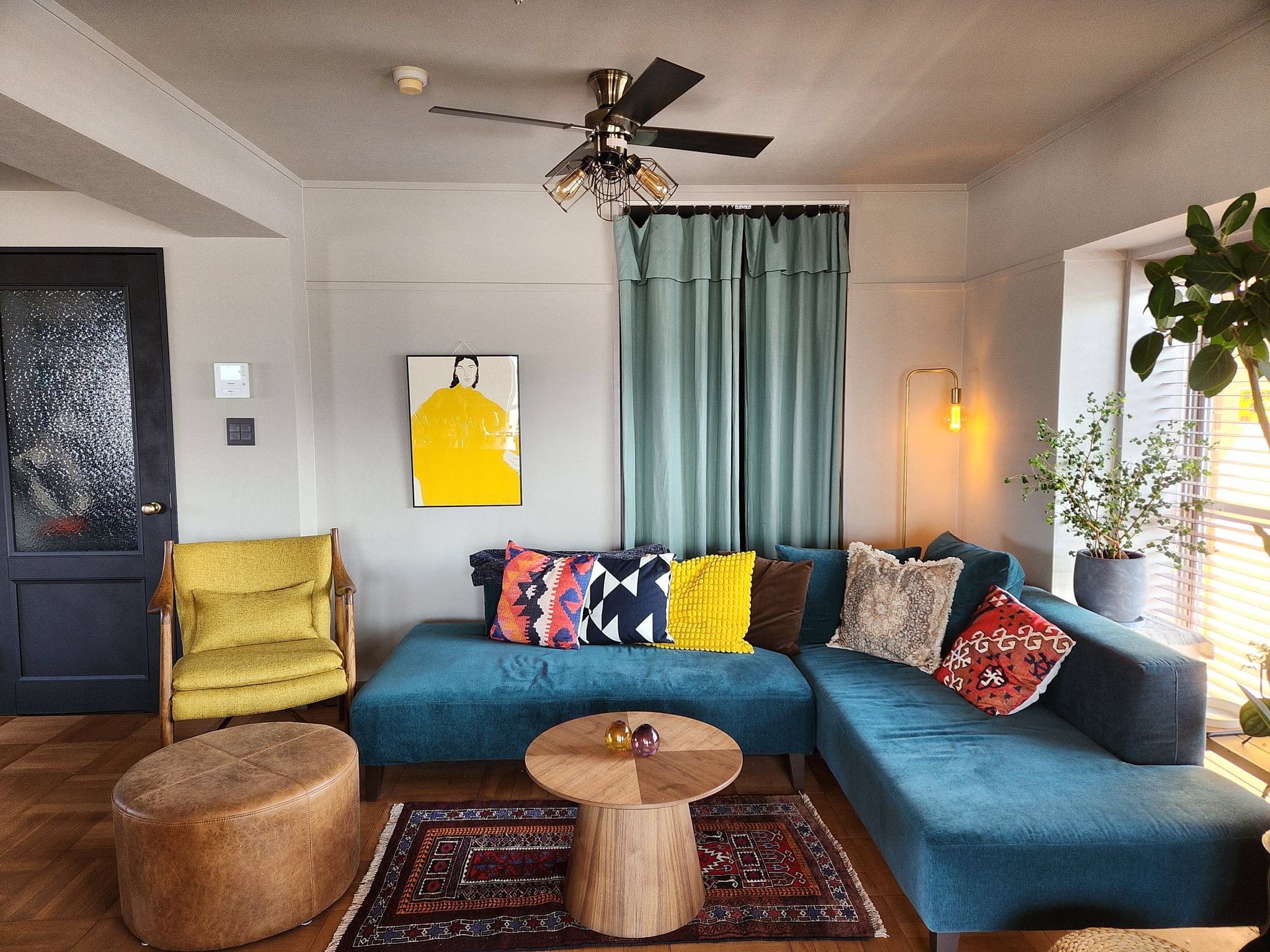 シンプルなインテリアに変化を付けたい、アクセントを加えたいと考える方にも、今回ご紹介いただいたmoo56co6さんの愛用品はうってつけです。もちろん、アジアンな雰囲気が好きな方やカラフルなコーディネートが好きな方にも◎。伺ったお話しからもわかるように、キリム柄は不思議なくらい臨機応変に『今あるもの』に馴染む力を備えています。4つセットなので、レイアウトや組み合わせの幅もかなり広めです。ぜひ、参考にしてみてください。