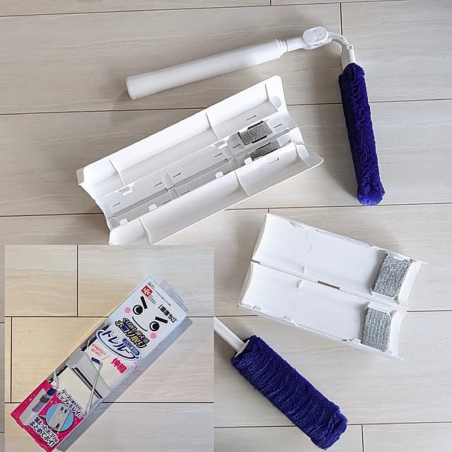 「以前から使ってたレック激落ちくんトレループハンディに、フロア用階段用シリーズがでてるのは知ってて買うか悩んでたけど、これは画期的!高い所用、伸縮タイプ!伸びる、曲がる、しなる!高いところはもちろん♪エアコンの上、冷蔵庫の上、タンスの上、シーリングライトの傘、もちろん低いところも…棚や家電周り、隙間や床もいけます!」
