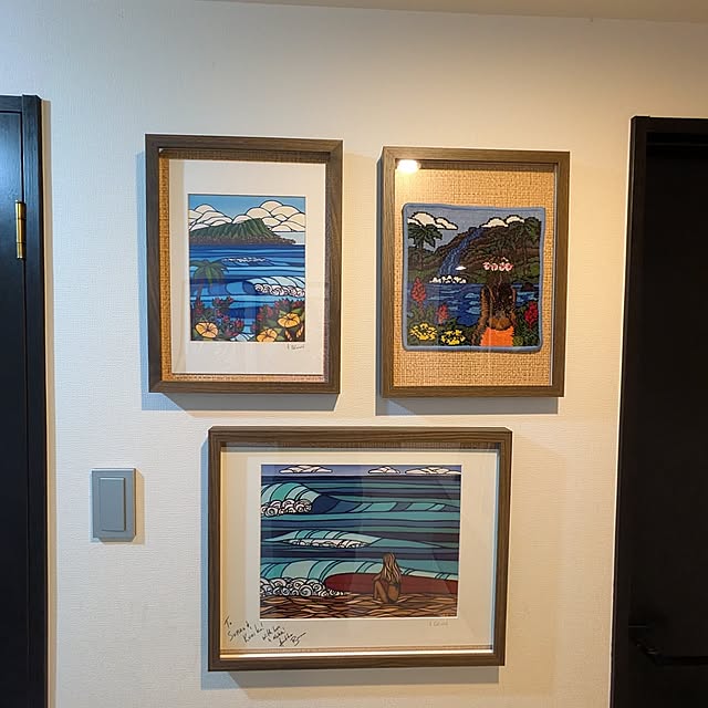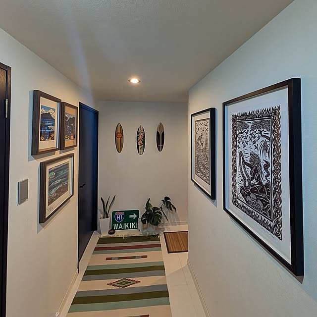 岐阜県在住のkolo92さんご夫婦のお住まいは、中古で購入された3LDK+ウォークインクローゼットの間取りのマンションです。玄関に入ると、ふわりと南国の風。ラグやアート、雑貨、照明……あらゆるものでハワイを思わせるインテリアに、思わず心が躍ります。