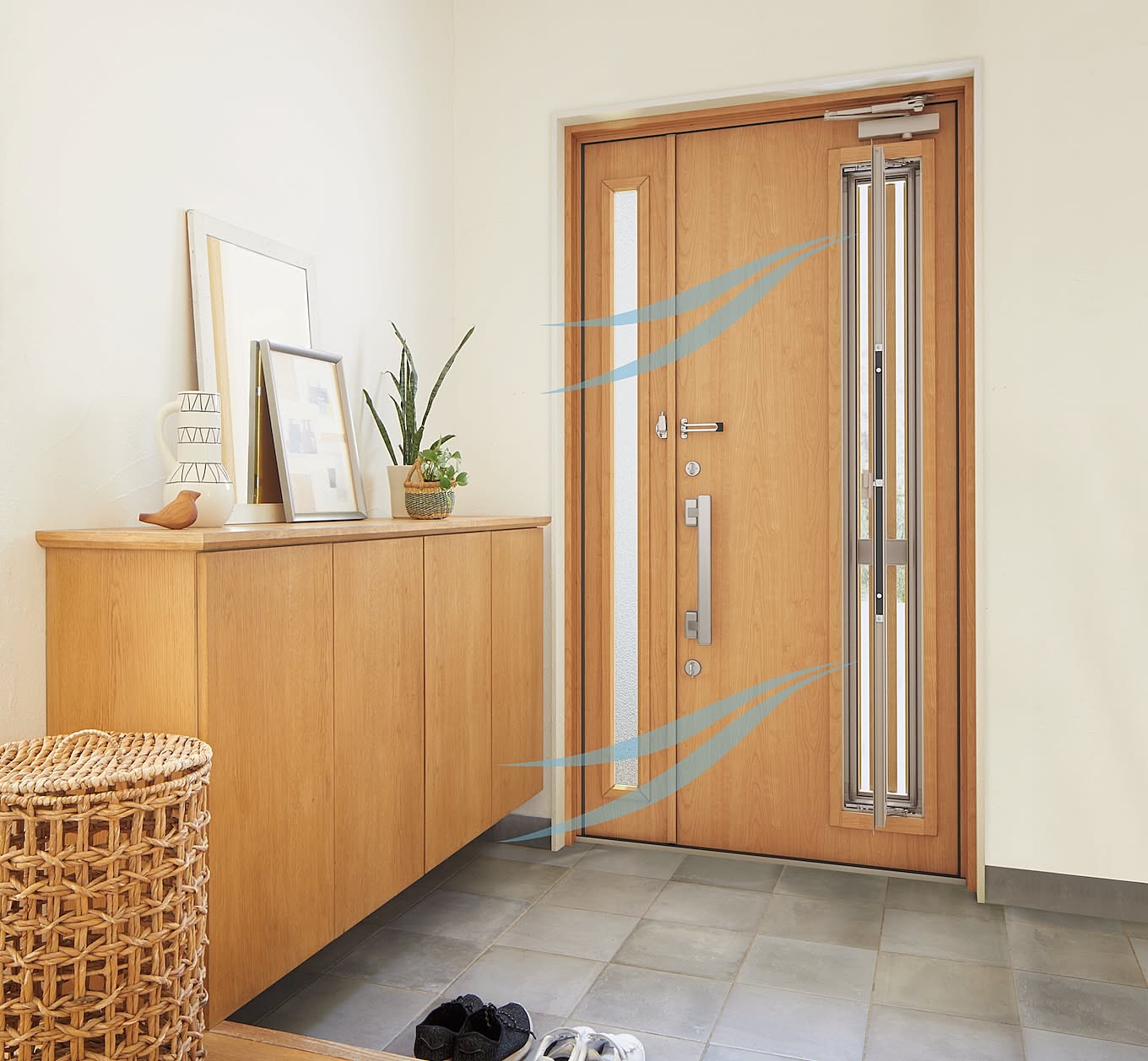 玄関スペースは家族が毎日出入りする場所であり、ゲストを迎え入れる場所。いつも快適で心地よい空間にしておきたいですよね。「リシェント玄関ドア3」には、断熱、採光、採風など、空間の快適さにこだわった工夫もたくさんあるんです!