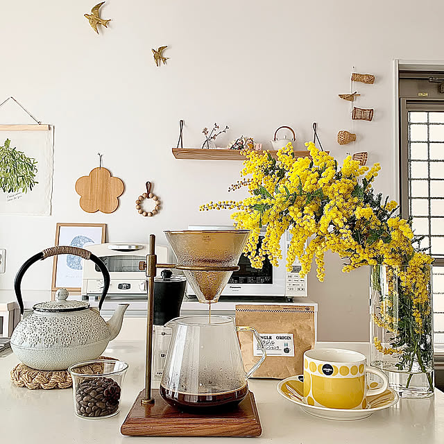 愛用だという KINTO「ブリューワースタンドセット」 は、コーヒーを淹れる時間そのものを丁寧に演出してくれるデザインが魅力。真鍮とガラスの組み合わせがキッチンに落ち着いた表情を添え、置いてあるだけで存在感があります。実用性とインテリア性の両方を楽しめるので、キッチンのワンコーナーにお気に入りをつくりたい方にもぴったりです。