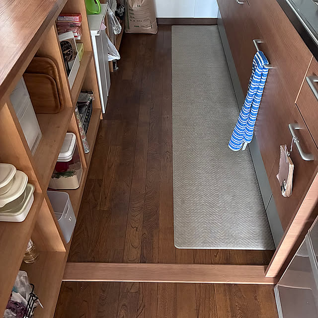 「ゴチャっとしたキッチンですが、扉がない方が使いやすくて。埃がすぐ溜まるので、定期的に中を出して拭かないといけません!」