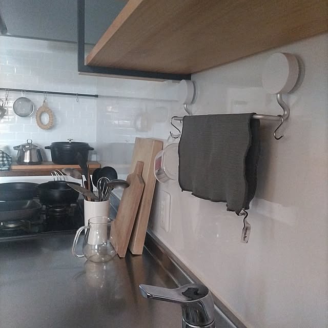 「存在感強いかな?と思いましたが、やっぱりキッチン周りは吊るす・かける収納が便利です!」