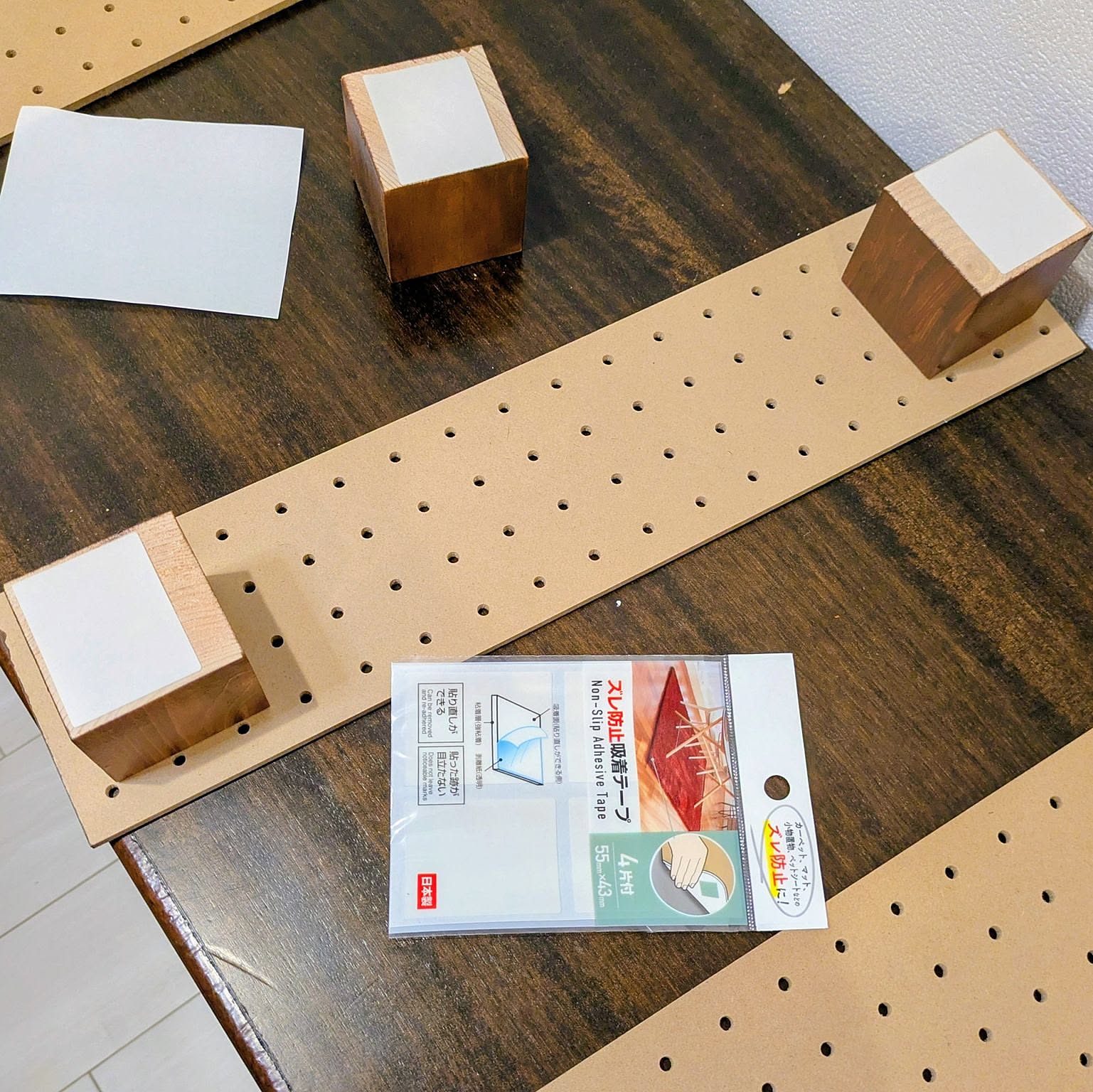 角材の底面(パンチングボードを固定した反対側)にズレ防止吸着テープを貼ります。