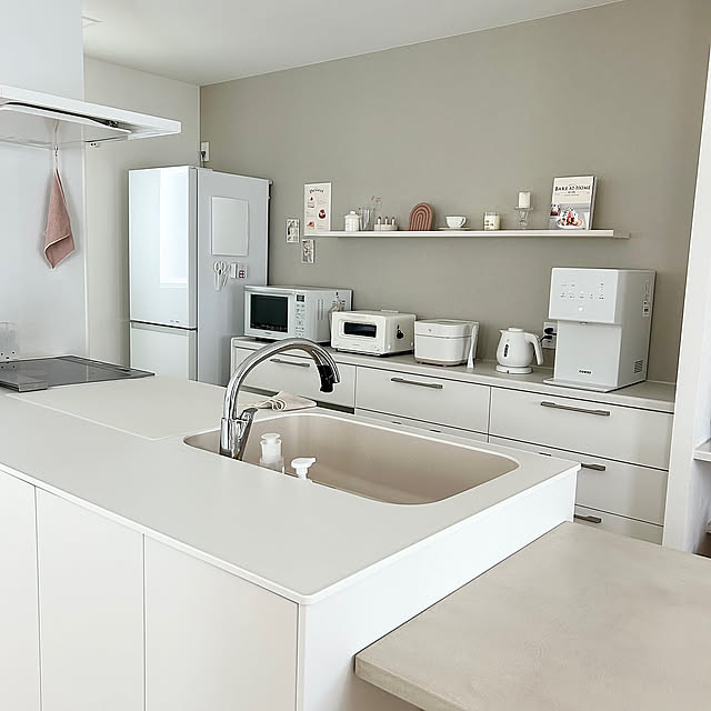 RoomClipユーザーの素敵なキッチンを紹介する「憧れのキッチン」連載。今回は、ホワイトやベージュを中心にした淡い色合いを楽しみながら、見た目の心地よさと日々の使いやすさを両立しているmoeさん宅のキッチンをご紹介します。好きな色を取り入れつつ、毎日の動作が自然とスムーズになる工夫も見逃せないキッチンです。素敵な空間づくりのヒントを、ぜひ見ていきましょう。