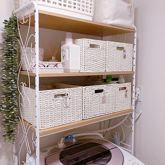 「洗面所の白いカゴたち。フェイスタオルやバスタオルをしまっています。」