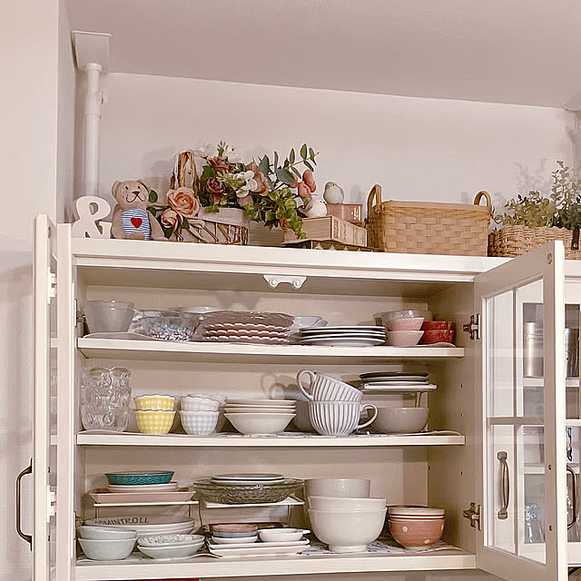 「夫も私も結婚前は一人暮らしをしていたので、とりあえずそのまま使っていた食器を持ってきていて、食器棚に詰め込んでいました。二人で暮らすようになって必要になった食器を買い足していくうちに、棚が大変なことに、、、ずっと、整理しなきゃと思っていたので、ようやくできて嬉しいです♪だいぶスッキリしたつもりなのですが、これでもまだ多いかも。笑 思い出も大事にしたいので、これからも少しずつ向き合いながら整理整頓、がんばります!」