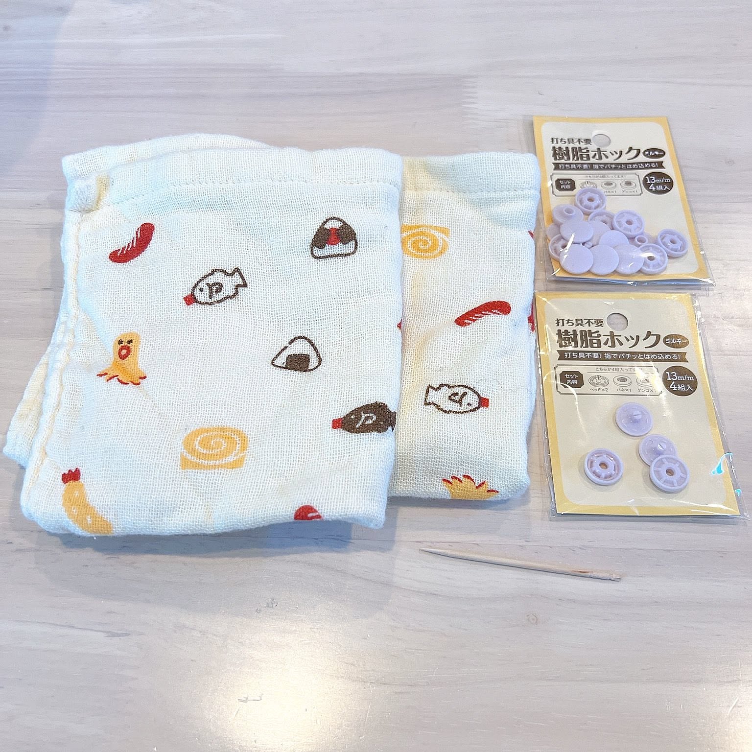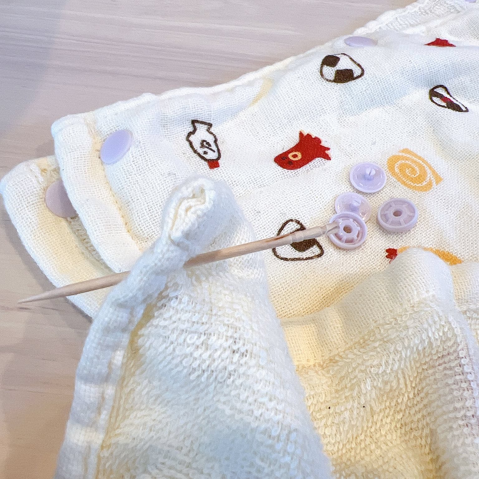 抱っこひものよだれカバーは、赤ちゃんがよくくわえるようになると、何個も必要になります。既製品をいくつも買うと費用もかさんでしまうため、ハンドタオルで代用できないかと考えたというchanduさん。セリアのアイテムを使えば、わずか10分で完成します。打ち具不要の樹脂ホックを使うことで、手軽に作れるのもうれしいポイント。毎日使うものだからこそ、無理なく用意できる工夫は参考にしたくなりますね。ぜひ真似してみてください。