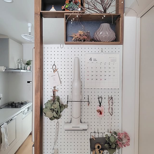洗面台の鏡裏という限られた空間に、突っ張り棒と吊り下げアイテムで新たな収納力をプラスされている工夫です。ティッシュを押さえて固定したり、小物を吊るして整理したり。指先一つで必要なものをすぐに取れる仕組みを実現されています。身支度をスムーズにするだけでなく、既製品を自分流にアレンジして、使いやすさのベストを見つける、Jijiさんの暮らしの知恵と工夫が光りますね。
