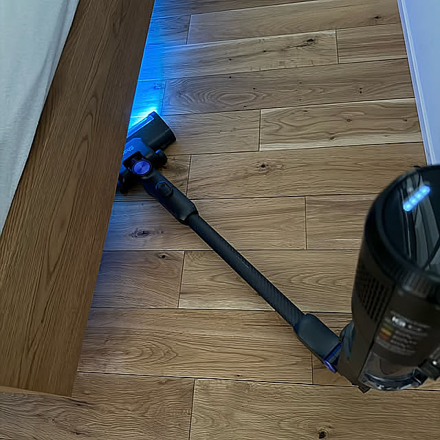 「何より良かったのは、スティックの途中に付いてるボタンを押すとスティックが曲がりベッドやソファの下を楽々掃除出来るようになったことです。あと青色LEDヘッドライトが付いていることで肉眼では見えない埃を照らしてくれるので、まめに掃除機を掛けるようになりました♪」