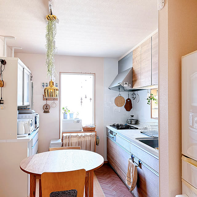 masumiさんのお宅は、木製家具のぬくもりと間接照明の明かりが重なり合う、北欧×ナチュラルヴィンテージな空間です。お気に入りの北欧雑貨が並ぶリビングは、柔らかな光に包まれ、家族が自然と集まりたくなるような温かな空気が流れています。キッチンも、白を基調とした明るく清潔感のある雰囲気。暮らしの動線を大切にしながら、ちょうどいいバランスで、住まいを丁寧に整えられていますね。