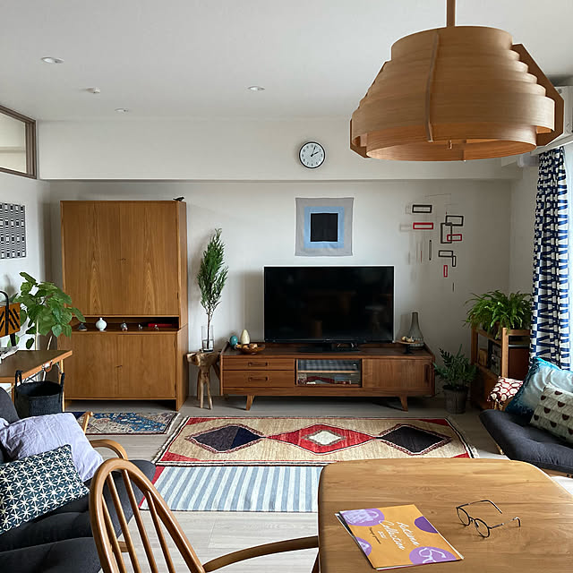 マンションふたり暮らし 2019年 現在の住まいに入居 ファブリック類が好きで柄物もたくさん取り入れています コメントに登場するビッグフットは夫です^_^