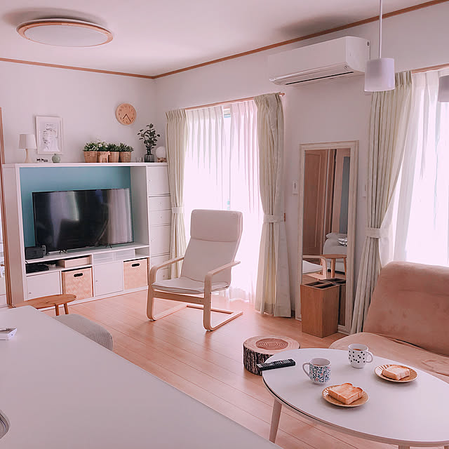 建売一戸建てのマイホームに夫と1歳の娘と住んでます。 建売でも赤ちゃんがいてもおしゃれなインテリア目指してペイント、DIYにも挑戦中。 ナチュラルであたたかみのある癒やされる部屋づくりを目指しています。家具はニトリ、IKEAがほとんど。 4LDK+S