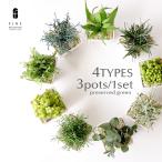 全4種【3個1セット】 プリザーブドフラワー ギフト グリーンポット グリーン  誕生日 お祝い 結婚祝い 新築祝い 送別祝い 開店祝い 観葉植物