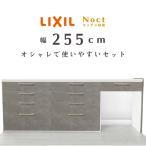 ノクト キッチンカウンター グレージュスタッコ255 セット 間口幅2550mm 高さ990mm 奥行450mm 食器棚 壁付型ハイカウンター リクシル LIXIL おしゃれ リフォーム