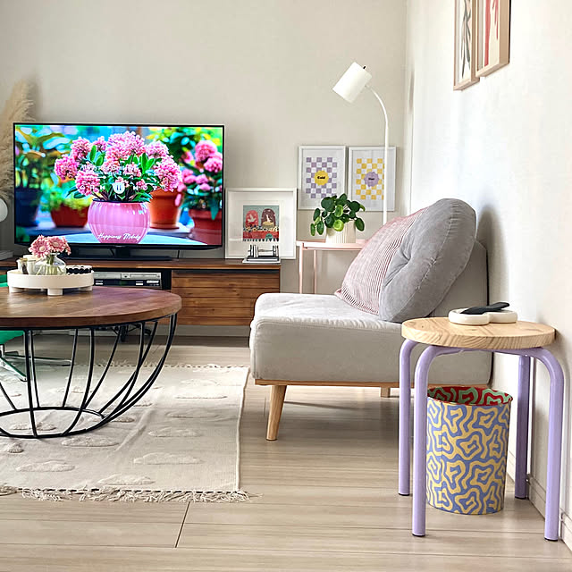 こちら側のリビングは木の家具があるので少し優しい雰囲気にしています。