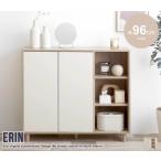 キャビネット おしゃれ 北欧風 Erin 収納棚 本棚 ホワイト×ナチュラル 幅96 高さ81cm 木目柄 バイカラー 飾り棚 見せる隠せる収納 北欧 シンプル