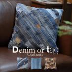 クッション TTC-331C  デニム ジーンズ おしゃれ かっこいい ヴィンテージ パッチワーク パッチ タグ ベルト通し ハンドメイド ベッド ソファ リビング リメイク