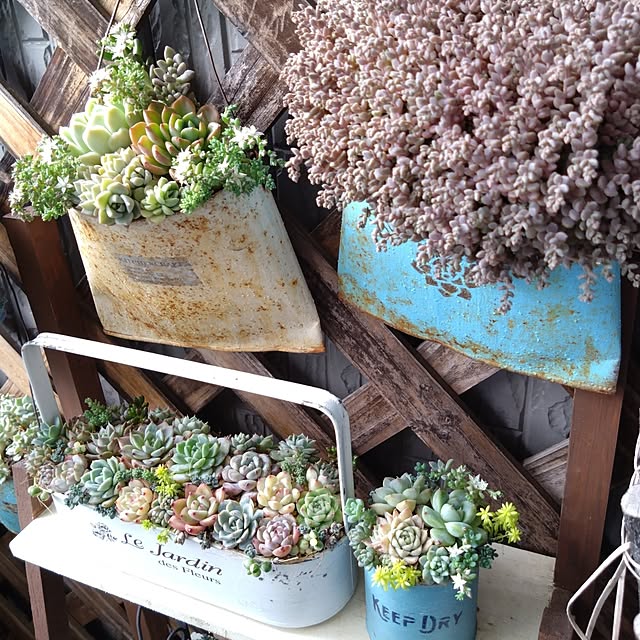 多肉の寄せ植え用にカインズで買った鳥かご、まだ手付かず状態😓このままでも可愛い🩷と自分に言い聞かせる、今日この頃‥‥2枚目 水色のリメ缶アフロくん(ダシフィルム)しばらく植え替えしていないのでずっと紅葉中😓花が終わったらカット予定ですᕙ⁠(⁠ ⁠ ⁠•⁠ ⁠‿⁠ ⁠•⁠ ⁠ ⁠)⁠ᕗ