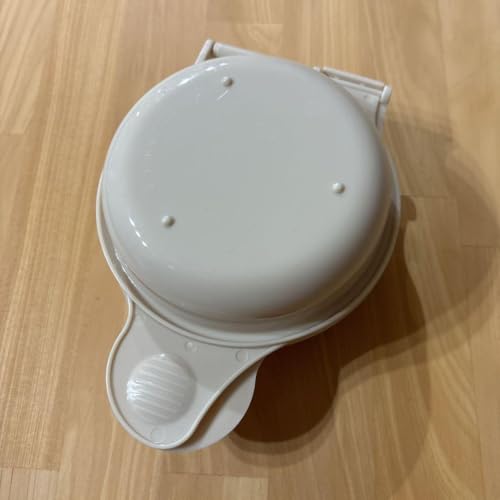 3COINSの目玉焼きクッカー✨フライパンを出して油を敷いて時間をかけて作るよりもはるかに簡単🎶小さじ1くらいの水で容器内を濡らしてその上に卵をポトン🥚君に数カ所穴を開けて、600Wで40秒→黄身はゆるゆる600Wで60秒→黄身は硬め※使っているレンジや卵の大きさで変わると思います。目玉焼きの硬さにこだわりのない人向きだとは思いますが😂わが家は一気に4個の目玉焼きを作りました🍳😆同じ大きさに作れるので、お昼はイングリッシュマフィンに挟んでセルフサンドにしました🎶ついでにベーコンもこれに入れてチンすれば、洗い物は増えません🎶
