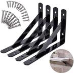 LUCINA L字型 棚受け金具 アイアンブラケット 4本セット ビス付き( ブラック,  250x160x16mm)