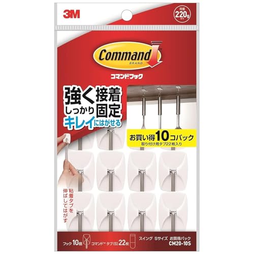 3M コマンド フック キレイにはがせる 両面テープ スイングフック Sサイズ 耐荷重220g 10個 CM20-10S