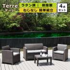 ガーデンテーブル セット ガーデンチェア 4点セット ラタン調 テーレ クッション付き おしゃれ 屋外 庭 ガーデン テーブル