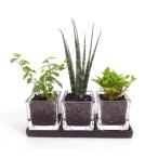 キュービックSS トリプル 皿付き 炭植え 観葉植物 ハイドロカルチャー 水耕栽培 インテリアグリーン