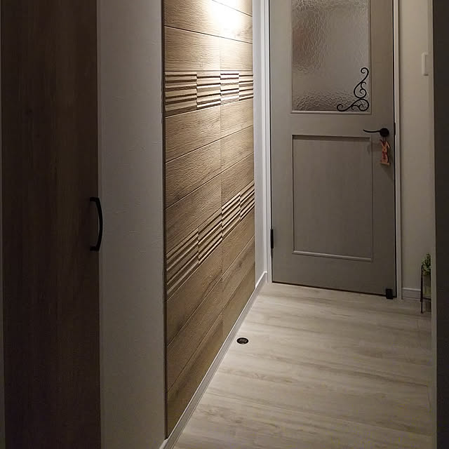 玄関の壁にはLIXILエコカラットを貼りました エコカラットはリビングと玄関に設置したい 種類が沢山あるので迷いました ストーングレースはリビングに決定 エコカラットの凹凸の素敵さを日々眺めたい… 家の第一印象になるお迎えする場所はヴァロスロック グレーに決めました 玄関、廊下は人感センサーにしました 帰宅時、扉を開けると自然と灯りが点き同時にエコカラットをダウンライトで照らしてもらうようにしました この風景、とても満足です♪
