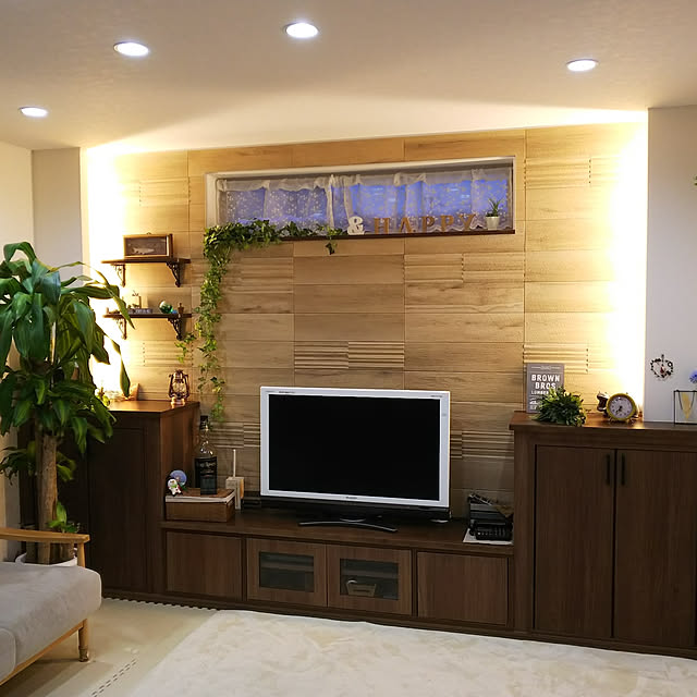 昨夜は、台風でどこにも出かけられなかったので、たまっていた録画鑑賞✨ 子供達が寝たあと、夫と2人でテレビを観るときは、照明はテレビ上のダウンライトのみ😊 2人でお酒を飲みながら映画鑑賞😊 ダウンライトの光でエコカラットが綺麗…夜のリビングの表情もお気に入りの一つです😊