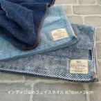 インディゴ染めフェイスタオル78cm×34cm 1枚 デニム ジーンズ風 デイリータオル  おしゃれ ミニタオル エステ サロン 美容院 送料無料