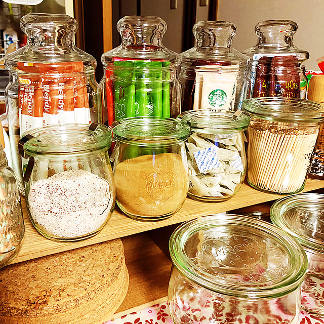 青い瓶の下に沈んでいるのと後ろの瓶に挿してあるお花は、夫が職場からいただいてきた紫陽花のドライです…やはり水分が多い種類でドライに不向き、チリチリに…(−д−lll)でも色はとっても綺麗だったので使ってあげました♡