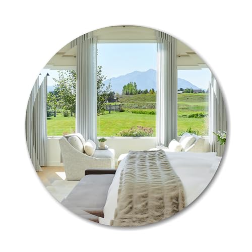 ANYHI ウォールミラー 壁掛けミラー 丸鏡 壁掛け鏡 浴室鏡 玄関鏡 丸型 壁式 鏡 洗面 玄関 おしゃれミラー ウォールミラー 壁飾り 化粧 メイク (フレームレス, 55 cm)