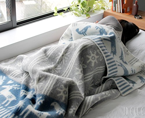 クリッパン(KLIPPAN) 224803 ラップランド ウールシングルブランケット 130×180cm ライトグレー(グレイ)/ブルー 【並行輸入品】