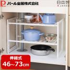 キッチンシンク下収納 2025.4.2 主にニトリのシンク下収納伸縮ラックと 伸縮ザル・ボウル・フライパンスタンドを使って 収納しています。 右側 伸縮ラック棚:使用頻度低めの大きいフライパンと鍋 伸縮ラック棚下:予備のフライパン・詰め替え前の油ボトル 伸縮スタンド:ボウル・ザル・鍋・フライパン×2・蓋×3 立てている物がスムーズに出し入れ出来る事と ズレ防止のためにブックエンドや輪ゴムも使ってカスタムして使っています。 左側 伸縮ラック上段:バット 伸縮ラック棚下:IKEAのヴァリエラを結束バンドで逆さに固定。まな板シート・マルチポット その下に大きいボウル、奥にたこ焼き器を収納しています。