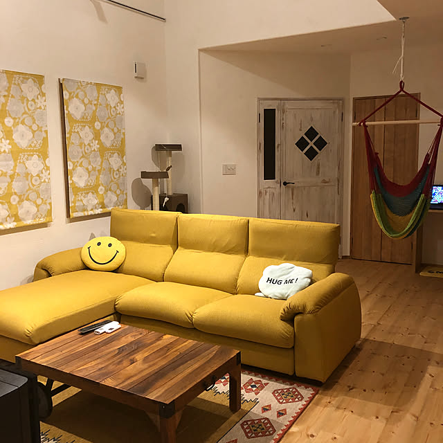 都会のおしゃれ家具屋でみつけたハンモックチェア。梁のある家を建てるからにはいつかは欲しいと思ってはいたけど、ネットだとサイズ感がわからないし怖くて買えずにいました。たまたま入った家具屋さんでみつけてお試しもさせてもらってやっと購入できました。